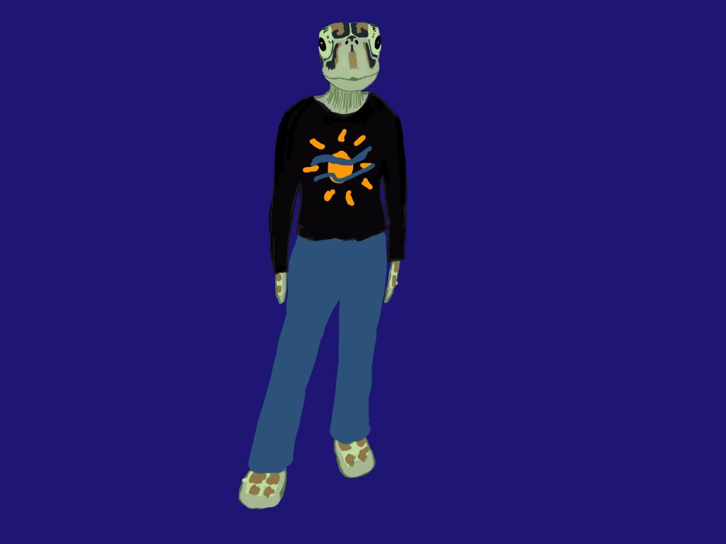 Assignment number three, Animal – Human hybrid … I found this slightly more challenging then the previous assignment. I wanted to combine a turtle and with a human … I think it was successful.
